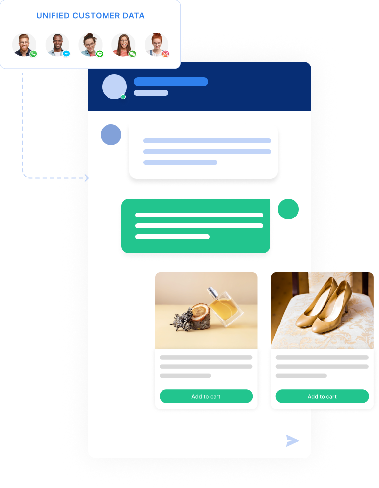 Manage all customer interactions across WhatsApp, Facebook, SMS, and more from one unified inbox.