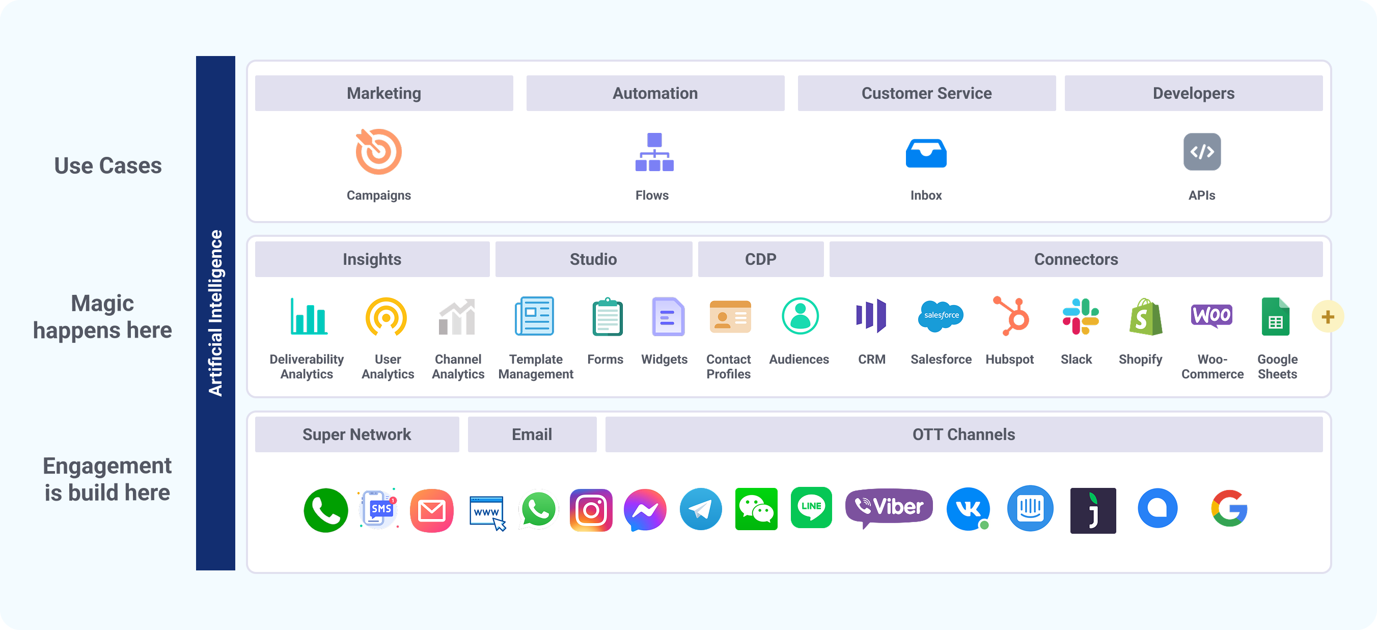 One platform, 16+ channels, 3 AI Power houses, unlimited possibilities.
